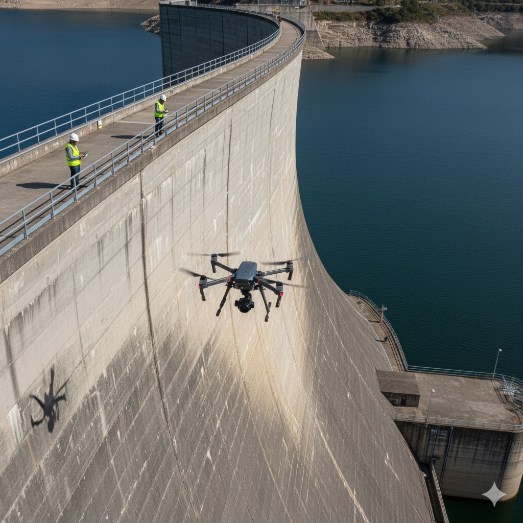 Inspecciones en aerogeneradores, presas, tuberías, conducciones o sistemas de riego en obra civil o mantenimiento operativo.