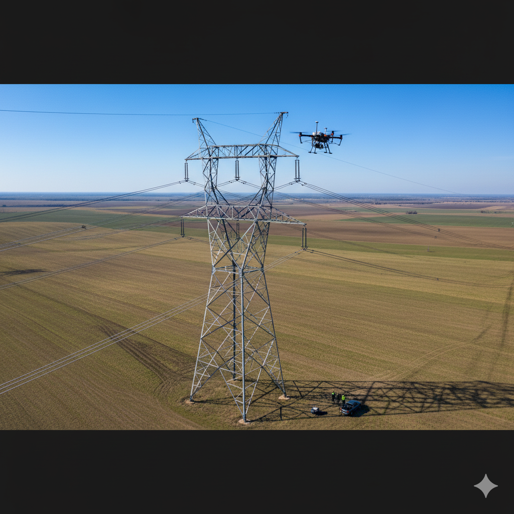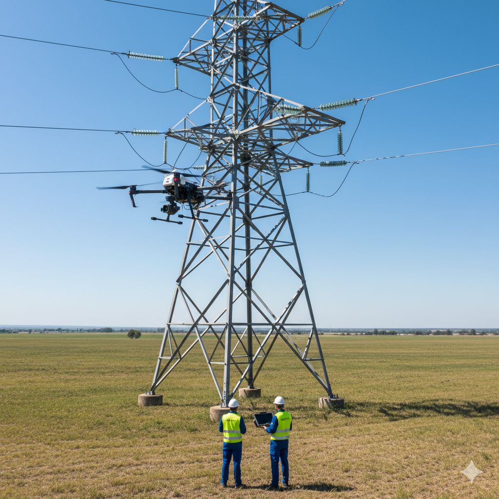 Inspección aérea de líneas y torres eléctricas para detectar daños estructurales, vegetación invasiva o elementos en riesgo.